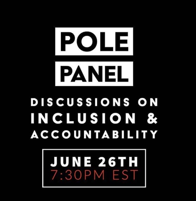As part of my education mission, I signed up for The Pole Panel: A discussion on Inclusion and Accountability presented by Carmine Black that took place on Friday 26th June. The panel was a wonderful, two-hour long discussion- packed full of enlightening and key conversations about what we can do to ensure that everyone is embraced, included and seen within the pole community.