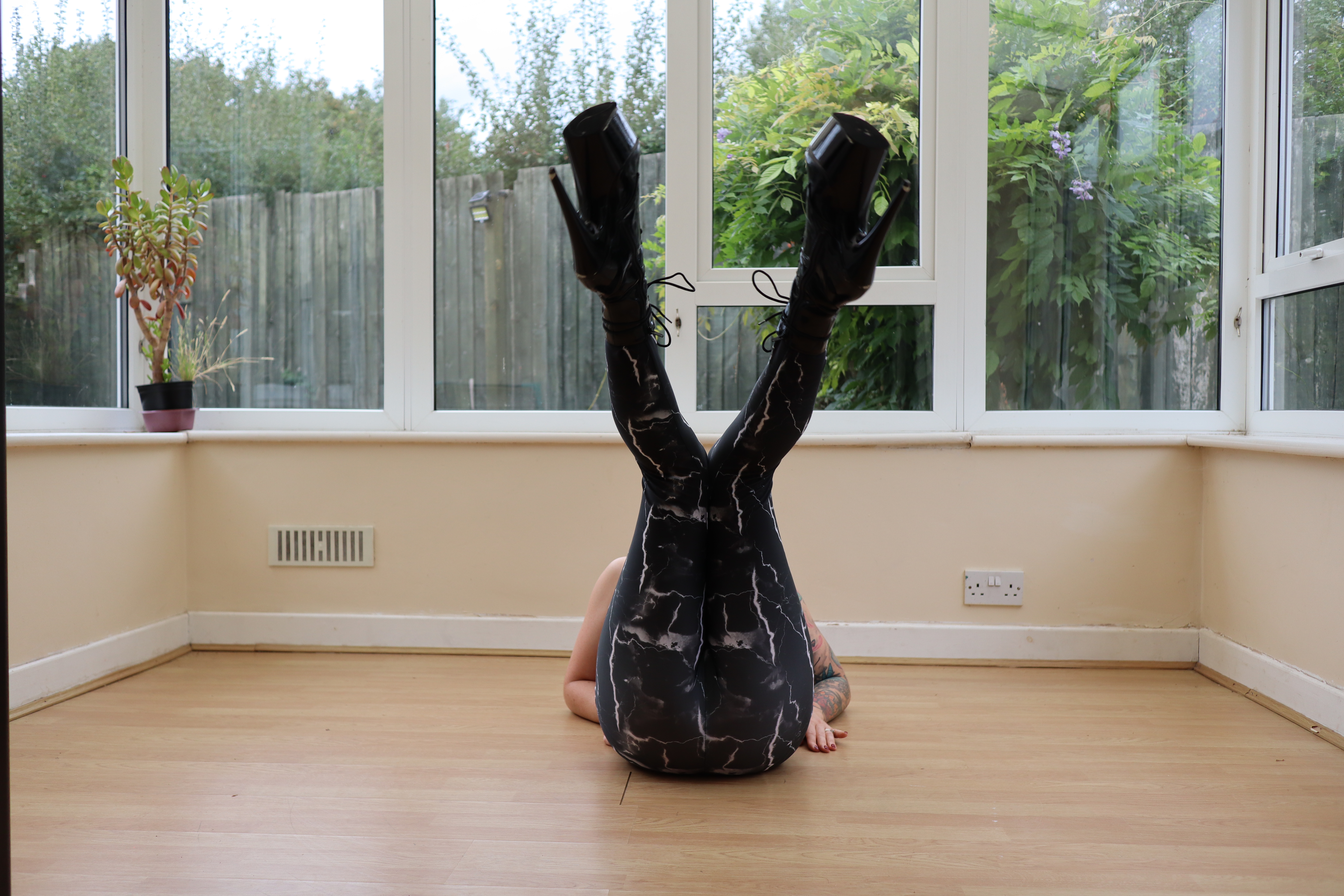 These are one of my favourite floor work moves purely because they involve a big old heel clack in the middle. Also, similarly to clock legs, I didn’t half feel like I was channeling my inner Sarah Blackmilk when I learned these many moons ago. To bust out a lush butterfly, either lay on your back or propped up on your elbows with your legs up straight and together in front of you similarly to the clock legs. Then lower your feet out and around away from each other in a big circle until they meet together down by your bum. Upon their meeting, smack the platform of your heels together as hard as you can and swing both feet out into a good old spreadie. You can reverse then repeat this move too multiple times for some additional, leg twizzling goodness.